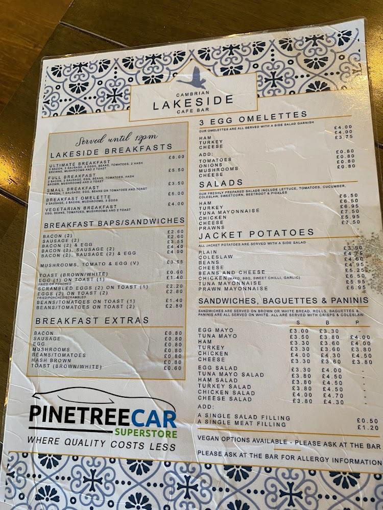 Cambrian Lakeside Cafe Bar resides in the heart of Clydach Vale, a beautiful spot within Tonypandy's Cambrian Industrial Park. The location stands out thanks to its picturesque lakeside views and welcoming atmosphere. Within the vicinity, visitors can explore the natural beauty of nearby trails, perfect for a refreshing walk before or after a meal. Parking is abundantly available, with free options provided in the area. Accessibility is crucial here, boasting wheelchair-accessible entrances, seating, and facilities. The café draws in locals and tourists alike, creating a diverse crowd that adds to its charm. Whether grabbing a quick coffee or settling in for a family meal, the vibe here is always relaxed and inviting, making it a delightful lunch or dinner spot.